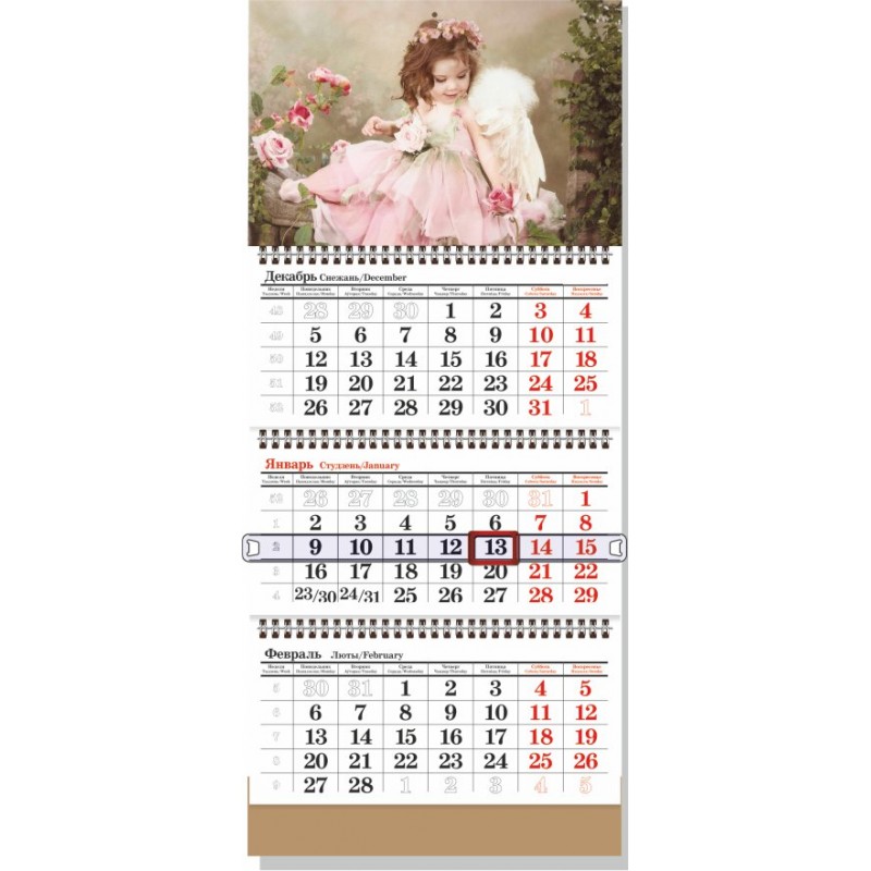 Календарь квартальный 3 пружины С ФОТО сетка СТАНДАРТНАЯ (одно рекламное поле)
