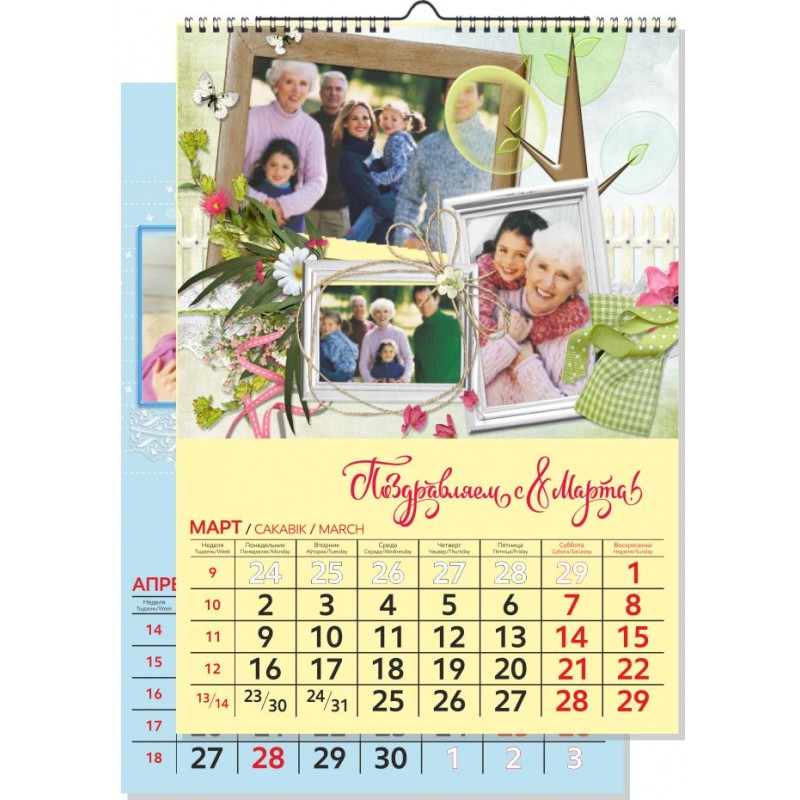 Календарь с фото 1 пружина НА РИГЕЛЕ, сетка ИНДИВИДУАЛЬНАЯ, вертикальный