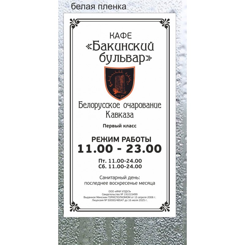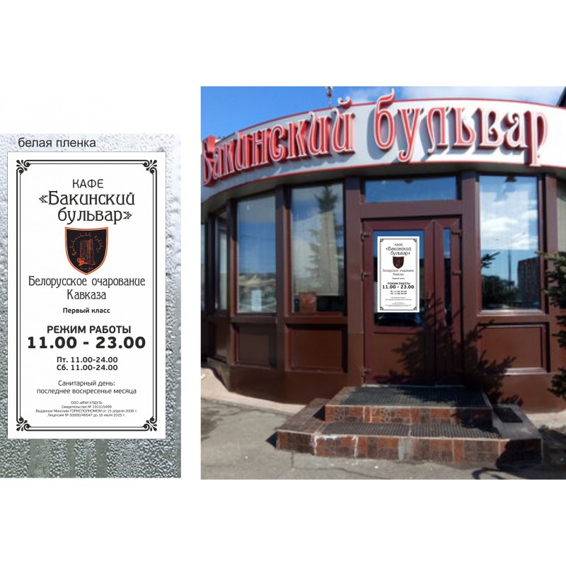 Оформление витрин, наклейка Режим работы 550*1000мм.