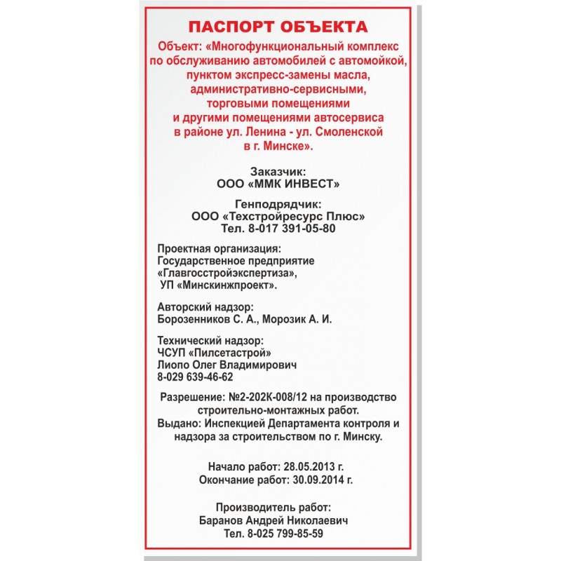 Паспорт объекта на ПВХ 4мм. 2000*1000мм.