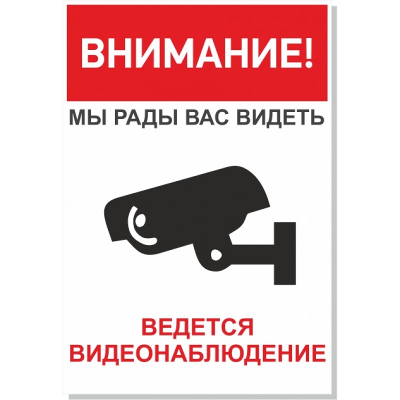 Табличка "Видеонаблюдение", ПВХ 3 мм., самоклеящаяся пленка ПВХ с печатью.