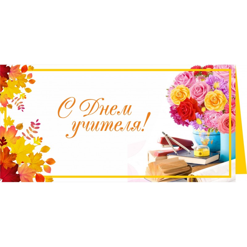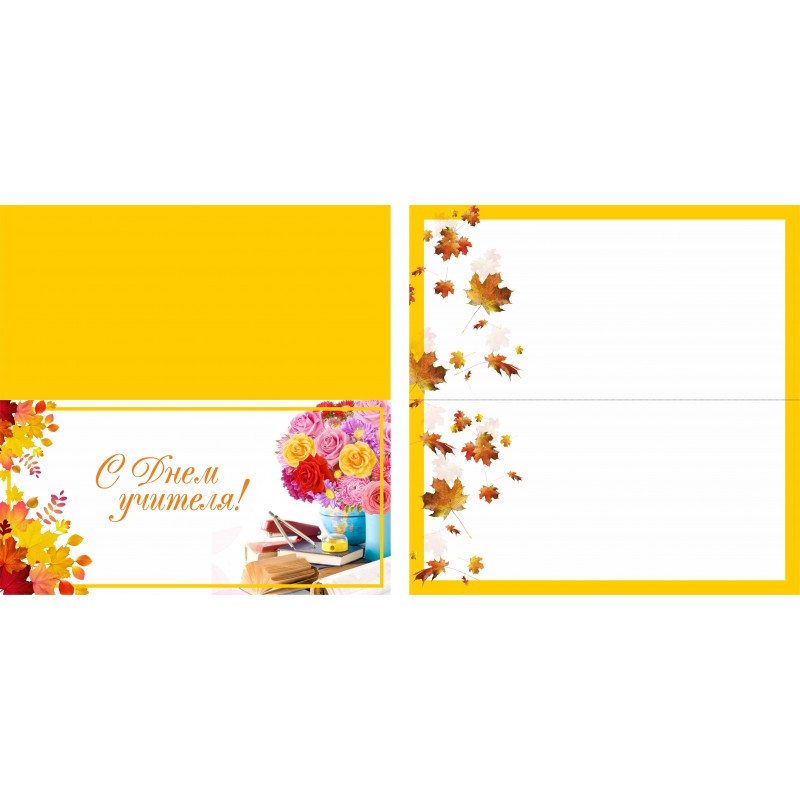Открытка с днем учителя, бумага 300 гр., двусторонняя, №1
