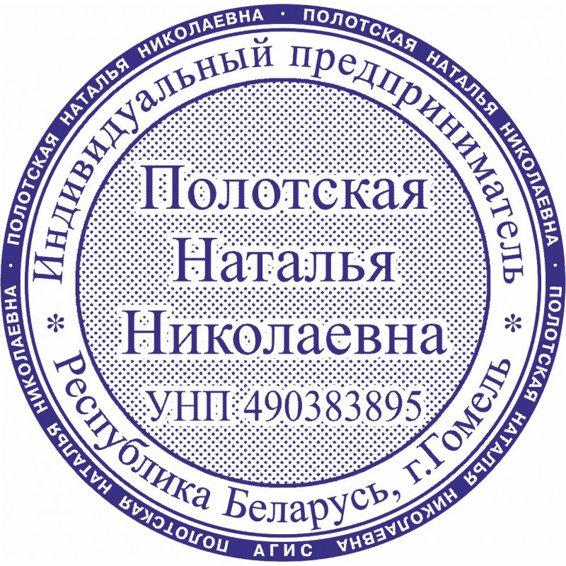 В печати указывается ФИО, место нахождения (город, область,район), по желанию УНП