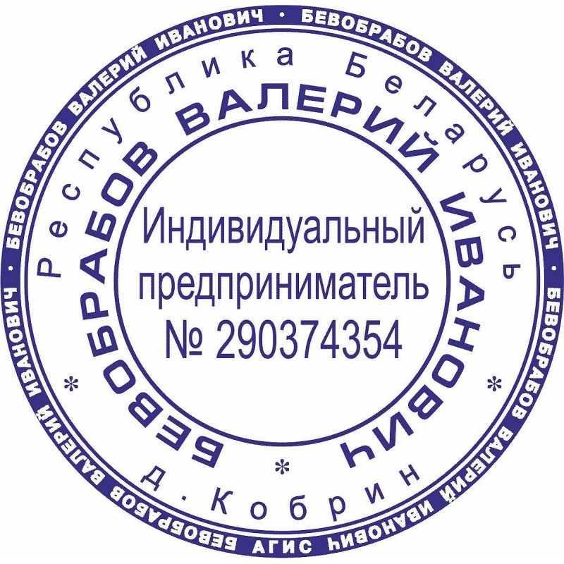 В печати указывается ФИО, место нахождения (город, область,район), по желанию УНП