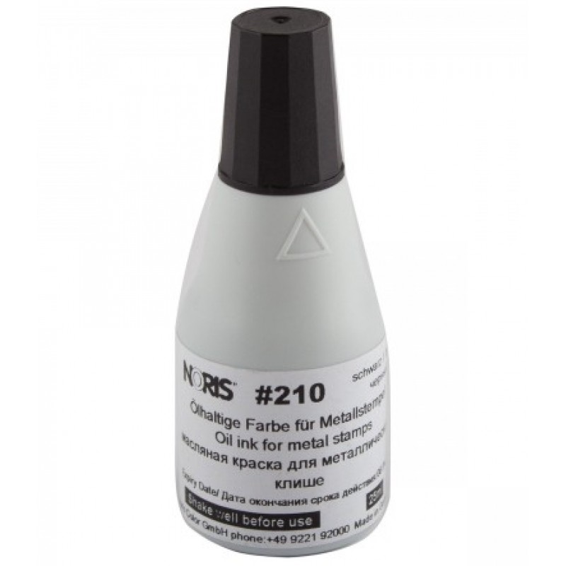 Штемпельная краска на масляной основе Noris 210 для металлических печатей быстросохнущая. Используется для нумерации и маркировки с металлическими штампами, датерами и нумераторами производства REINER и др., а также франкировальными машинами. Благодаря своим химическим свойствам, глубоко проникает в структуру бумаги и является практически нестираемой. Время высыхания - 15 сек