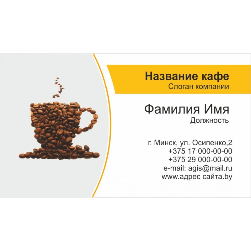 Визитка кафе, ресторана 90*50мм.,односторонняя 100шт., Арт.2