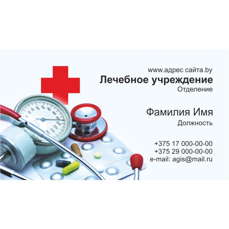 Визитка медицина 90*50мм.,односторонняя 100шт., Арт.7