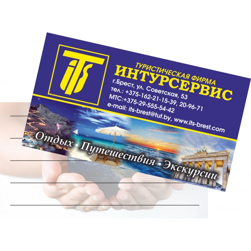 Визитка 90*50мм. двусторонняя, цифровая печать, ламинация 200мкм глянцевая, 100шт.