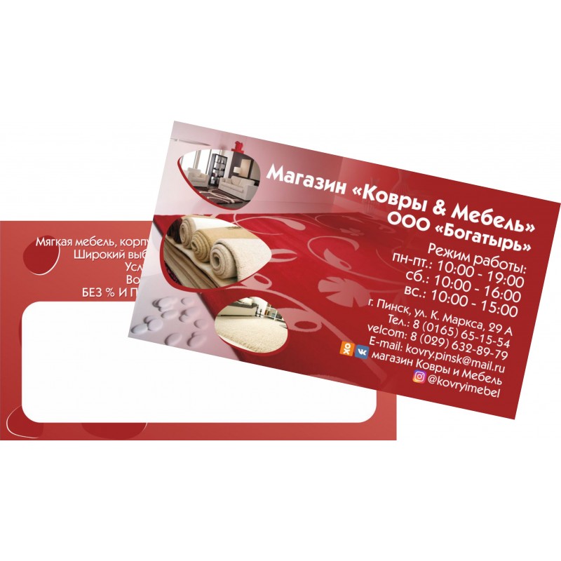 Визитка 90*50мм. двусторонняя, цифровая печать, ламинация 24мкм глянцевая/матовая с одной стороны, 100шт.